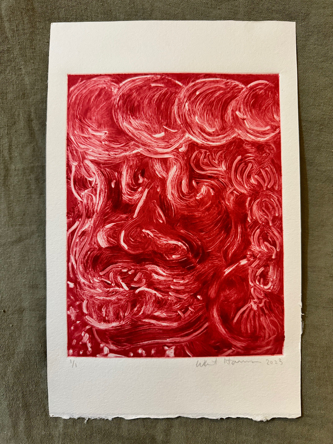 Pictured is a beautiful 1/1 monotype by Whit Harris. The work was printed during Whit's residency in Chatham, NY at The Macedonia Institute. The work measures 7.5” x 11.5” and is printed on Rives BFK printing paper.